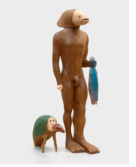 CORY REYNOLDS | DATE 3/5/2026Venezuelan-American sculptor Marisol was well known among the early-1960s Pop artists before turning from the limelight in the late 1960s, when she began to experiment with political and environmental themes. In 1968, she participated in the Venice Biennale and then Documenta, where she was one of just four women among the 149 exhibiting artists. “Despite her success, she grew frustrated with the brutal police response to Vietnam War protests in the United States and spent much of the second half of 1968 traveling in India, Nepal, Cambodia, Sri Lanka and Thailand,” Cathleen Chaffee writes in the new Louisiana Museum of Modern Art exhibition catalog. “In 1969, she intensively trained to scuba dive in Tahiti. In new works made after these experiences, she explored human-animal interdependence as well as connections between the American military-industrial complex and the life of the oceans. These sculptures include her chimeralike The Fishman (1973, shown here) and sculptures of barracuda and needlefish, which she connected to missiles and other modern forms of weaponry. As she later told an interviewer, ‘I have always had a special communication with the world of animals. I wish humans were like that.’ In seeking to understand the life of underwater creatures through her remarkable sculptures, Marisol combined aspects of the evolutionary mimicry so common in the animal kingdom with a deeply sympathetic human approach. One of the most direct ways to understand another is to try to see from their perspective and feel what it is like to be them: to ‘walk in their shoes,’ swim in their water. In casts she appended to these deeply strange aquatic sculptures, Marisol studiously puckered and contorted her face to appear like the fish with which she was absorbed.”