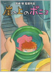 CORY REYNOLDS | DATE 2/14/2026“Ponyo loves Sosuke! I will be a human, too!” So says the unforgettable titular goldfish-princess-turned-mischevious-girl of Hayao Miyazaki’s 2008 hand-drawn masterpiece, Ponyo. A surreal yet childlike adaptation of The Little Mermaid, Ponyo is both a love story and a tale of powerful female curiosity and self-confidence. This Japanese poster for the film is reproduced from Hayao Miyazaki, published by DelMonico Books and the Academy Museum of Motion Pictures on the occasion of the museum’s inaugural exhibition in 2021—and on our minds anew this Valentine’s weekend as the Academy Museum’s highly-anticipated Ponyo exhibition opens to the public. “Having used CGI in his previous three feature films, Miyazaki decided, with Ponyo, to return to hand-drawn animation and once more push its potential by rendering the shapes and movements of a fluid world ‘where magic and alchemy are accepted as part of the ordinary,’ curator Jessica Niebel writes. “Miyazaki instructed Ghibli’s creative team to ‘get rid of straight lines. Use gently warped lines that allow the possibility of magic to exist liberating us from the curse of perspective drawing.’ The singularity of Ponyo lies in its flowing organic lines, which express a world dynamic defined by the living presence of the sea, ‘where even the horizon swells, dips and sways.’”