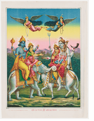 CORY REYNOLDS | DATE 2/19/2026Published to accompany the exhibition currently on view at MFA Boston, Divine Color: Hindu Prints from Modern Bengal is a book unlike any other on our list. Filled with eye-popping, now-rare but once mass-produced vernacular religious lithographs from 19th- and early 20th-century Kolkata—aka colonial Calcutta—it shows how Bengali artists insisted upon and represented their own religious traditions and icons, while incorporating new printing techniques from the west. Pictured here, “Hari Hara Milan (Union of Shiva and Vishnu),” produced around 1895–1910 by Chore Bagan Art Studio. It’s an example of the “rainbow roll” printmaking technique that became popular among local presses, where several colors of ink were blended on a roller to create a seamless, dynamic, almost psychedelic gradient behind traditional compositions. The print depicts “an encounter between Shiva and Vishnu, each riding an animal mount and accompanied by his consort,” according to curator Laura Weinstein. “The heads of Vishnu’s elephant and Shiva’s bull merge in a visual trick with roots in South Asian art over a millennium old. While the chromolithograph resembles an earlier version by Calcutta Art Studio, certain iconographic and stylistic changes are evident. Most notably, the blue-gray sky with puffy white clouds has been replaced by a candy-colored rainbow roll.”