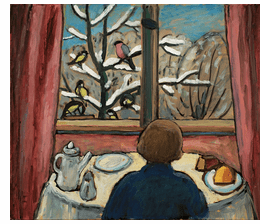 CORY REYNOLDS | DATE 12/16/2025 Breakfast of the Birds (Das Frühstück der Vögel) (March 10, 1934) is reproduced from Gabriele Münter: Contours of a World, published to accompany the landmark exhibition on view at Guggenheim Museum through April 2026. Long overlooked in favor of her male counterparts in the Blaue Reiter movement—which she actually cofounded—this major survey places Münter front and center among contemporaries like Wassily Kandinsky, her one-time romantic partner. “Misnomers of ‘naïve’ and ‘natural’ were applied to a practice that astutely interrogated concepts of identity and authenticity, form and color,” exhibition curator Megan Fontanella writes. “In the years 1908 to 1914, the artist’s still-life ‘experiments,’ as she called them, distinguished her production and helped establish Münter’s public identity. She reimagined the still life—historically characterized as among the so-called lesser academic pursuits—and, with her acute gaze, unlocked its potential for radical originality. In doing so, Münter challenged perceptions of both the genre and the capabilities of women artists with compositions that at once empower and disarm the viewer, transforming the ordinary into the remarkable.”