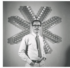 CORY REYNOLDS | DATE 3/22/2026 Featured image, of Tom Lloyd on the opening night of his solo show Electronic Refractions II—the inaugural exhibition at the Studio Museum in Harlem, 1968—is from Tom Lloyd, the exhibition catalog to the museum’s current exhibition, which closes March 22 to great critical acclaim. “An early pioneer of using electric light as an artistic medium, Tom Lloyd developed a highly experimental and technologically advanced art practice in the 1960s that set him apart from many of his fellow artists,” curator Connie H. Choi writes. “Employing a purposely limited but defined vocabulary of colors, forms, and shapes, Lloyd challenged not only understandings of art at the time but, perhaps more important, the definition of art made by Black artists. He thereby promoted a relationship between abstraction and blackness that was greatly debated during the 1960s, and one that continues to animate conversations around artistic practices.”