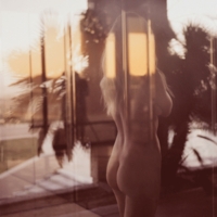 The human figure in these images--Kuhn’s friend and collaborator Jacintha--emerges like a surrealist mirage, fragmented and indistinct, at times submerged in shadows or overexposed. The building’s facades of glass and mirrors serve as optical planes, an extension of the artist’s camera and lens. Light is split into refracting colors, desert vegetation grows sideways, inside is outside and outside in. Kuhn pushes a certain disorienting effect by introducing metallic foils as an additional surface, at times producing purely abstract results. The work marks Kuhn’s increasing use of techniques that appear to merge the figure, abstraction and landscape into one.