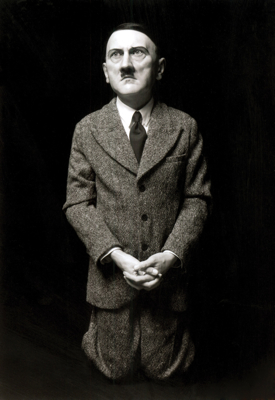 Cattelan invoked another icon of power—albeit power in its most corrupt form—in the sculpture Him (2001, , cat. no. 82), a wax effigy of Adolf Hitler kneeling in supplication, hands clasped and looking upward as if in prayer. Rendered at a slightly diminutive scale and dressed in schoolboy attire circa 1935, the figure is radically destabilizing. Here is an image of “evil incarnate,” to borrow the artist’s own words, but in an unexpected if not inconceivable pose of repentance. This unimaginable scenario asks the question whether forgiveness for the atrocities of Hitler’s mad dictatorship could ever be possible. The paradox it presents reverberates in Cattelan’s Ave Maria, which also conflates the abuse of power with the question of absolution. The wounds from the Third Reich are still fresh, the damage wrought irreversible. The dangerous, anti-Semitic ideas perpetrated by Nazism are still in circulation today and continue to threaten the social order—hence the decision by Sonsbeek to reject Cattelan’s proposal for a poster campaign announcing a skinhead rally. In Germany it is strictly forbidden even today to publish an edition of Hitler’s manifesto, Mein Kampf (1925–26): banned since 1945, the book, it is feared, would inspire further acts of evil. For many, the Holocaust itself is beyond representation; the tragedy is so enormous that it defeats any attempt at description or illustration. Cattelan’s title, Him, a simple pronoun in place of the figure’s actual name (which it suggests is too horrifying to utter), encapsulates this resistance and underscores the potency this reference still has today. When asked in an interview about the sculpture, the artist explained his ambiguous relationship to it: