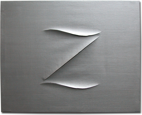 The artist’s apparent need to rebel against authority figures (or at least mercilessly tease them) recalls a classical Freudian oedipal complex. As applied to culture by literary critic Harold Bloom in his famous study The Anxiety of Influence, the concept involves a creative misreading, a necessary misinterpretation by the artist of that which has come before. “The history of fruitful poetic influence,” he explained, “is a history of anxiety and self-saving caricature, of distortion, of perverse, wilful revisionism without which modern poetry as such could not exist.” Cattelan has made a practice of deliberately disfiguring the art of his “fathers,” modern Italian forerunners whose cultural importance and influence is indisputable. In a number of untitled works (1993–99, fig. 28, cat. no. 23), he reimagined the Concetti spaziali (Spatial concepts, 1949–60) paintings of Lucio Fontana, monochrome canvases perforated with multiple slashes to underscore the work’s dimensional presence in space. Cattelan’s playful revision of this singular contribution to Italian art was to reconfigure Fontana’s slashes into a Z, the mark of Zorro, that outlaw hero from popular culture immortalized in pulp fiction, Hollywood films, and a 1950s Disney TV series. The artist claims to have stumbled across a canvas punctured with the distinctive Z as a readymade of sorts, not wanting, perhaps, to own up to creating such an obvious violation of Fontana’s art. The presence of the Zorro paintings in Cattelan’s oeuvre solves a practical problem for him that exists by virtue of the fact that he makes almost every piece in response to a specific situation and in singular form: he does not tend to work in series per se, developing an idea over a prolonged period through numerous iterations of a particular theme. The Zorro paintings, however, exist in varying sizes and colors, thus providing him with “product” to feed an always-demanding market system.